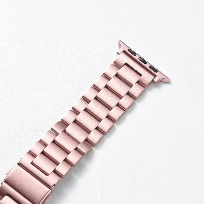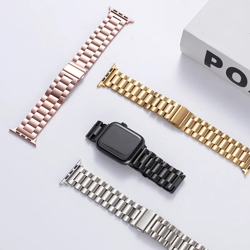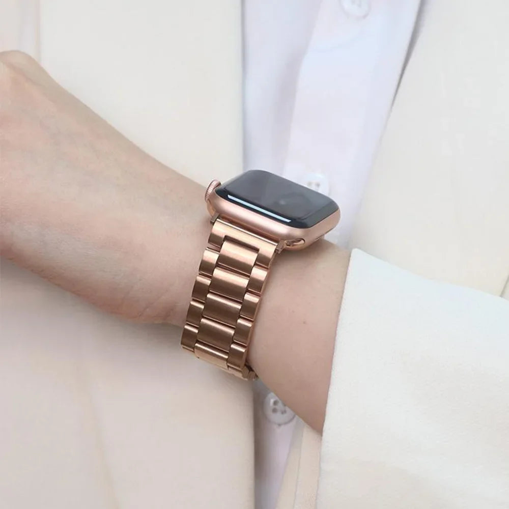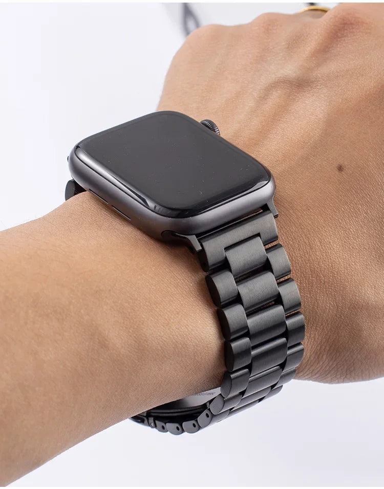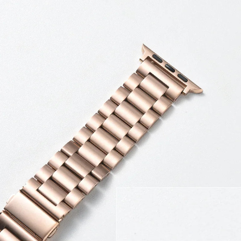 The LuxeLink Collection transforms your Apple Watch into a true fashion accessory with premium stainless steel link bands. Available in Rose Gold, Gold, Black, and Silver, these bands are designed for comfort, durability, and a timeless look that works for every occasion.