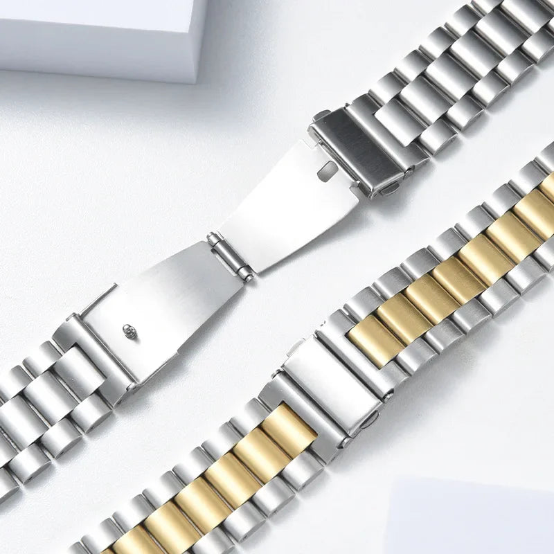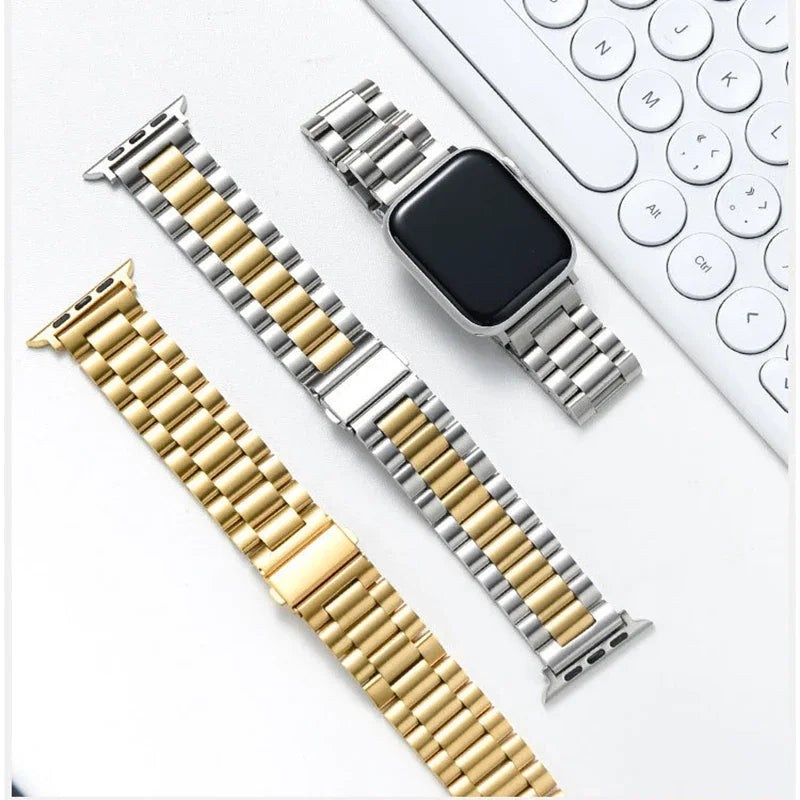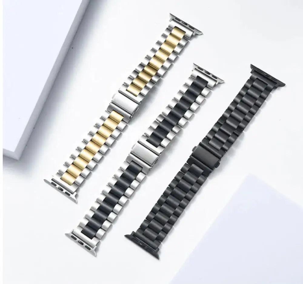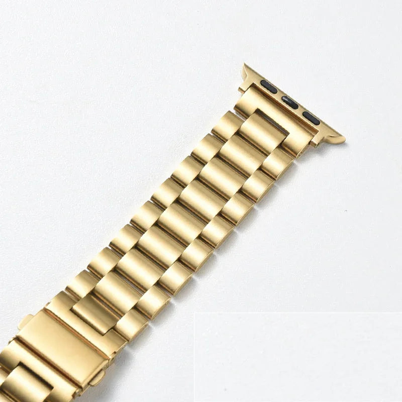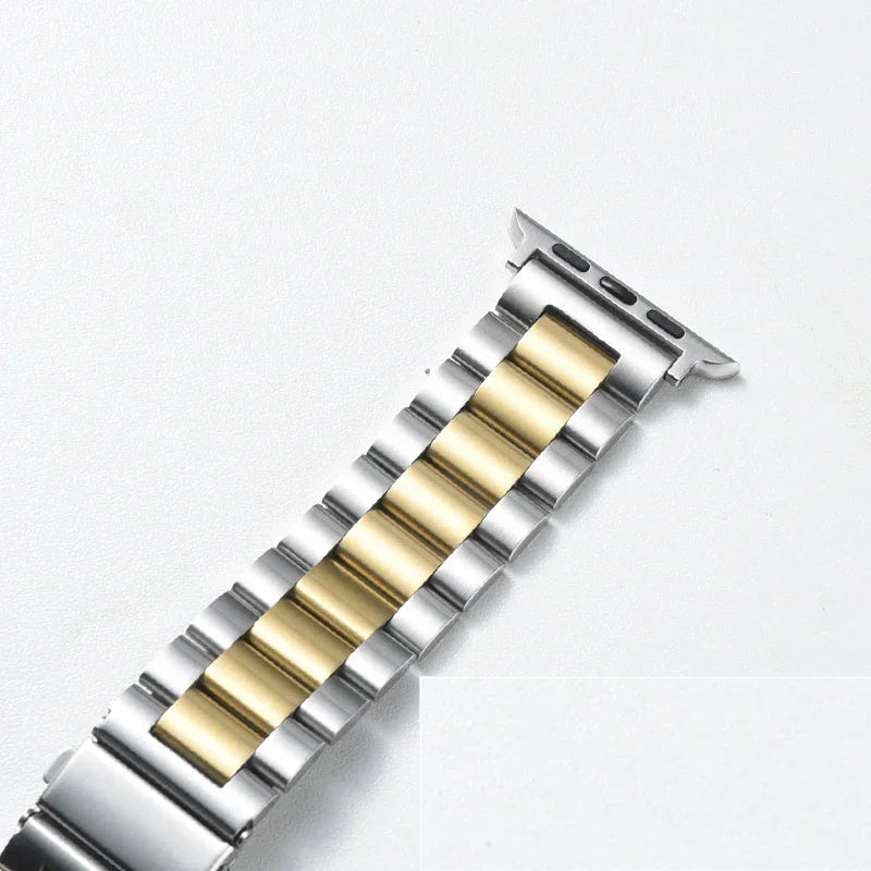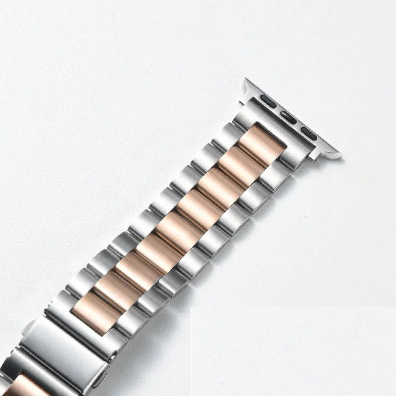 The LuxeLink Collection transforms your Apple Watch into a true fashion accessory with premium stainless steel link bands. Available in Rose Gold, Gold, Black, and Silver, these bands are designed for comfort, durability, and a timeless look that works for every occasion.