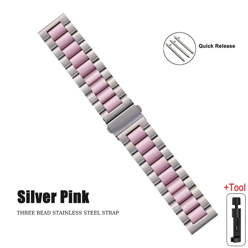 Transform your smartwatch into a fashion statement with the Minimally Chic Collection. Crafted from premium stainless steel, these interchangeable bands bring timeless sophistication with a modern edge. Whether you prefer classic silver, bold black, or a luxe two-tone finish, each band elevates your look with clean lines and lasting style.