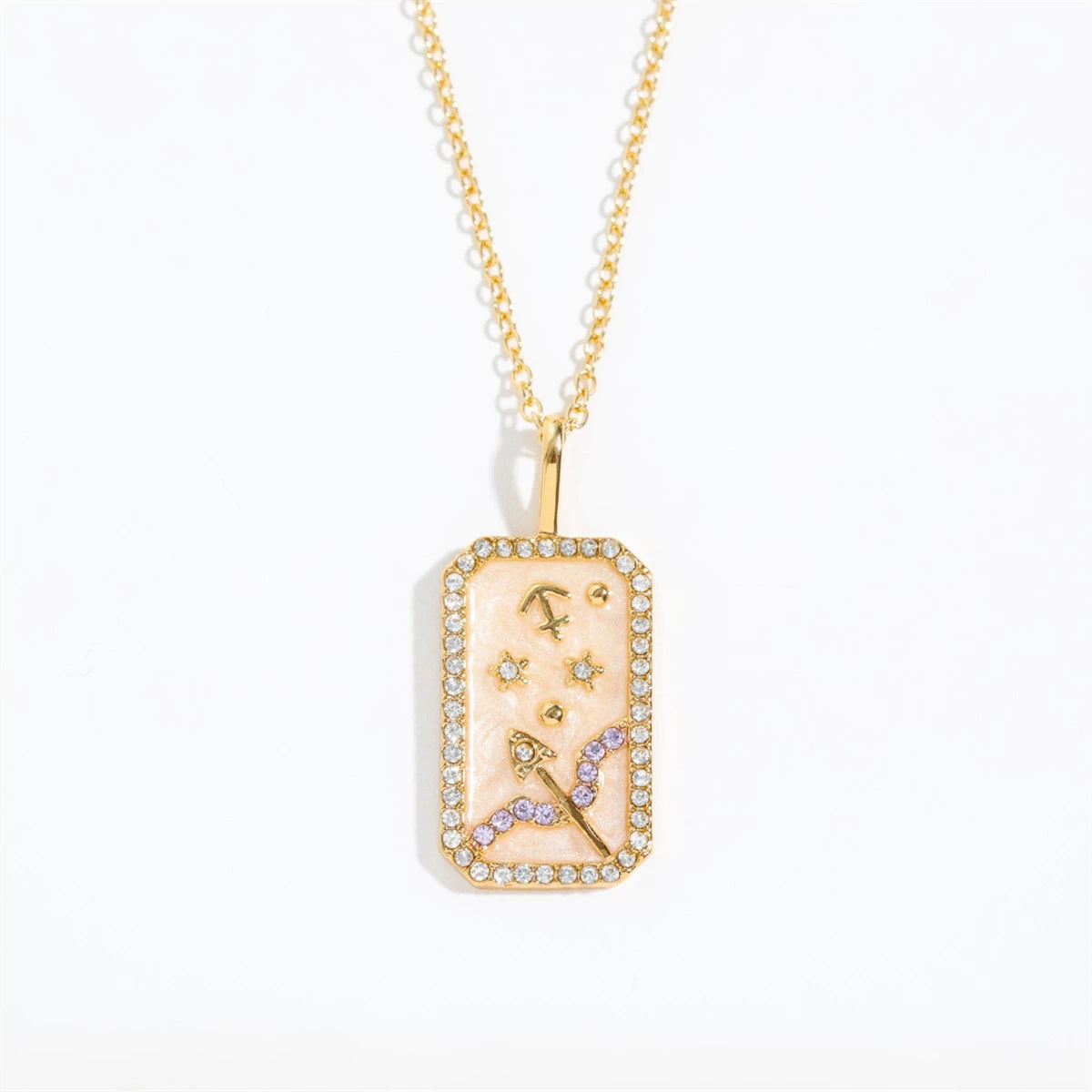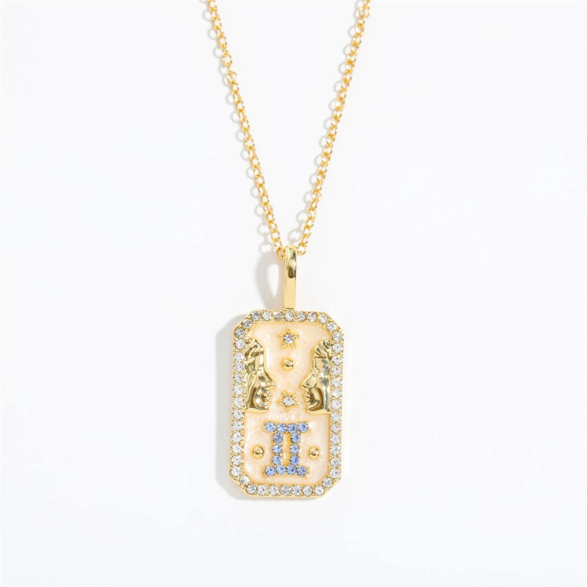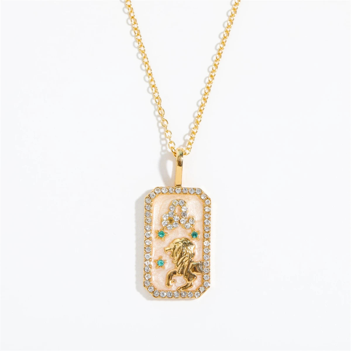 Bring the stars closer with the Celestial Luxe Zodiac Collection. Each pendant showcases your sign in a gold-tone frame with sparkling gemstone accents and a luminous background. Bold, elegant, and timeless — these necklaces are the perfect way to keep your zodiac energy close.