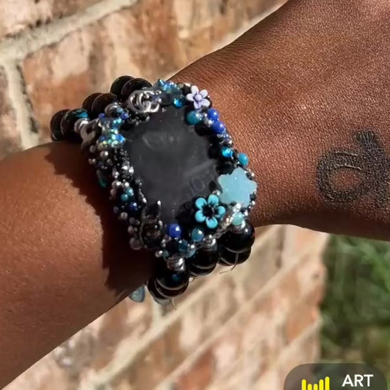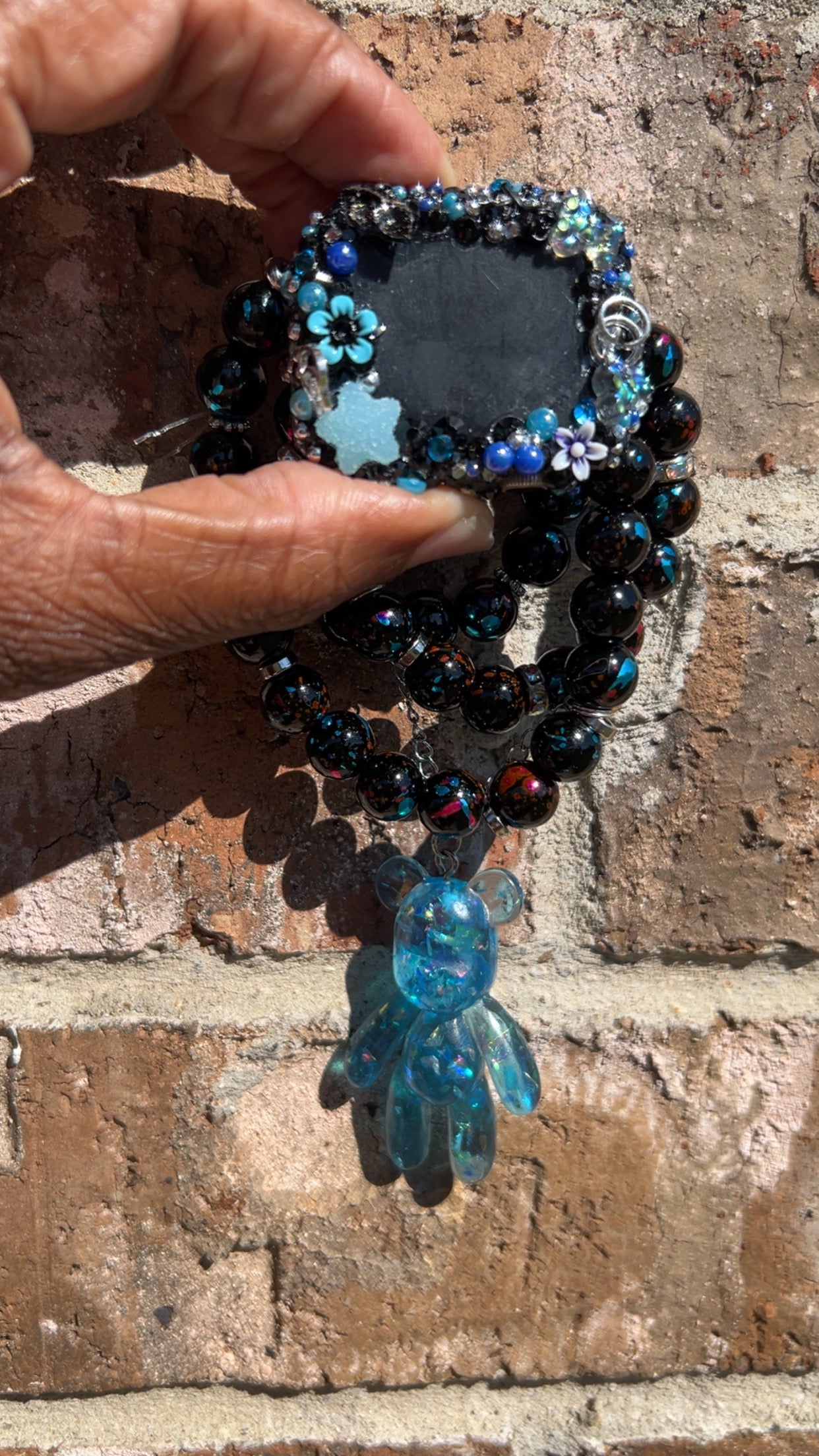 Transform your Apple Watch into a statement piece with this Bloom & Bijou exclusive set. Featuring a sparkling, gem-studded case and a handmade beaded bracelet band, this duo is all about playful luxe. The chunky beads shimmer with iridescent tones, while the oversized aqua gummy bear charm adds a fun, whimsical twist. Perfect for anyone who wants their watch to feel more like jewelry than tech.