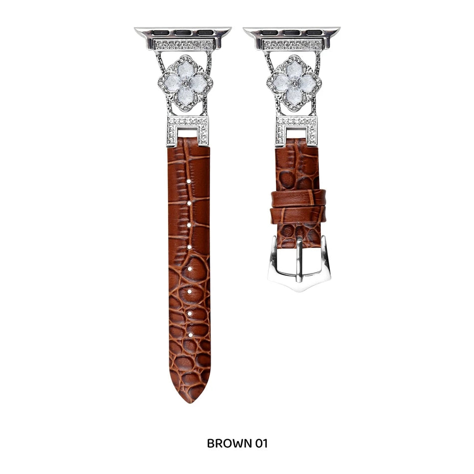 Upgrade your Apple Watch with elegance. Featuring a premium leather strap, crystal-studded floral links, and gold-plated hardware, this band blends timeless charm with modern functionality. Perfect for daily wear, business looks, or a glam night out.
