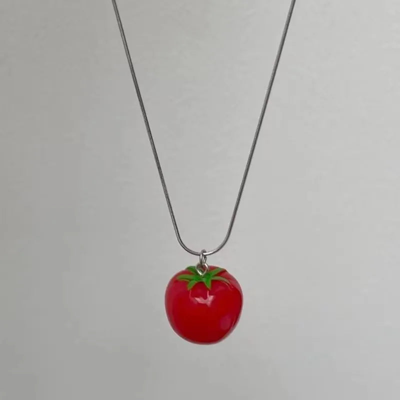 Make a bold (and playful) statement with the Fresh Pick Tomato Necklace. Featuring a glossy red resin tomato pendant on a sleek snake chain, this trendy piece adds a pop of color and personality to any outfit. Perfect for layering or wearing solo, it’s equal parts quirky, chic, and fun.