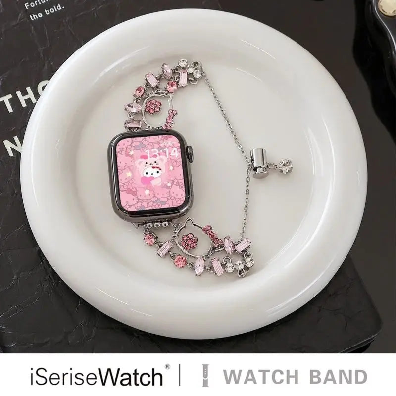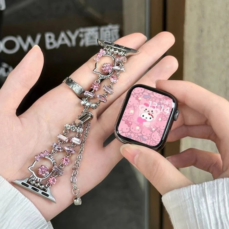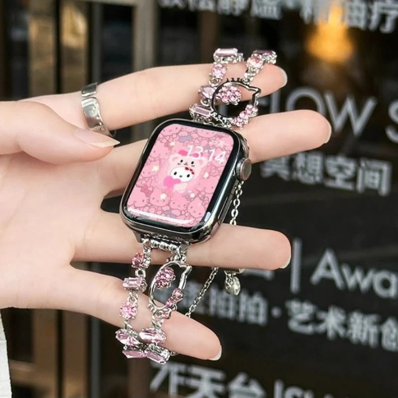 Add a touch of cuteness and shine to your smartwatch with the Kitty Sparkle Band. Featuring crystal-studded kitty charms and shimmering accents, this bracelet-style band turns your Apple Watch into a piece of jewelry that’s as fun as it is stylish.