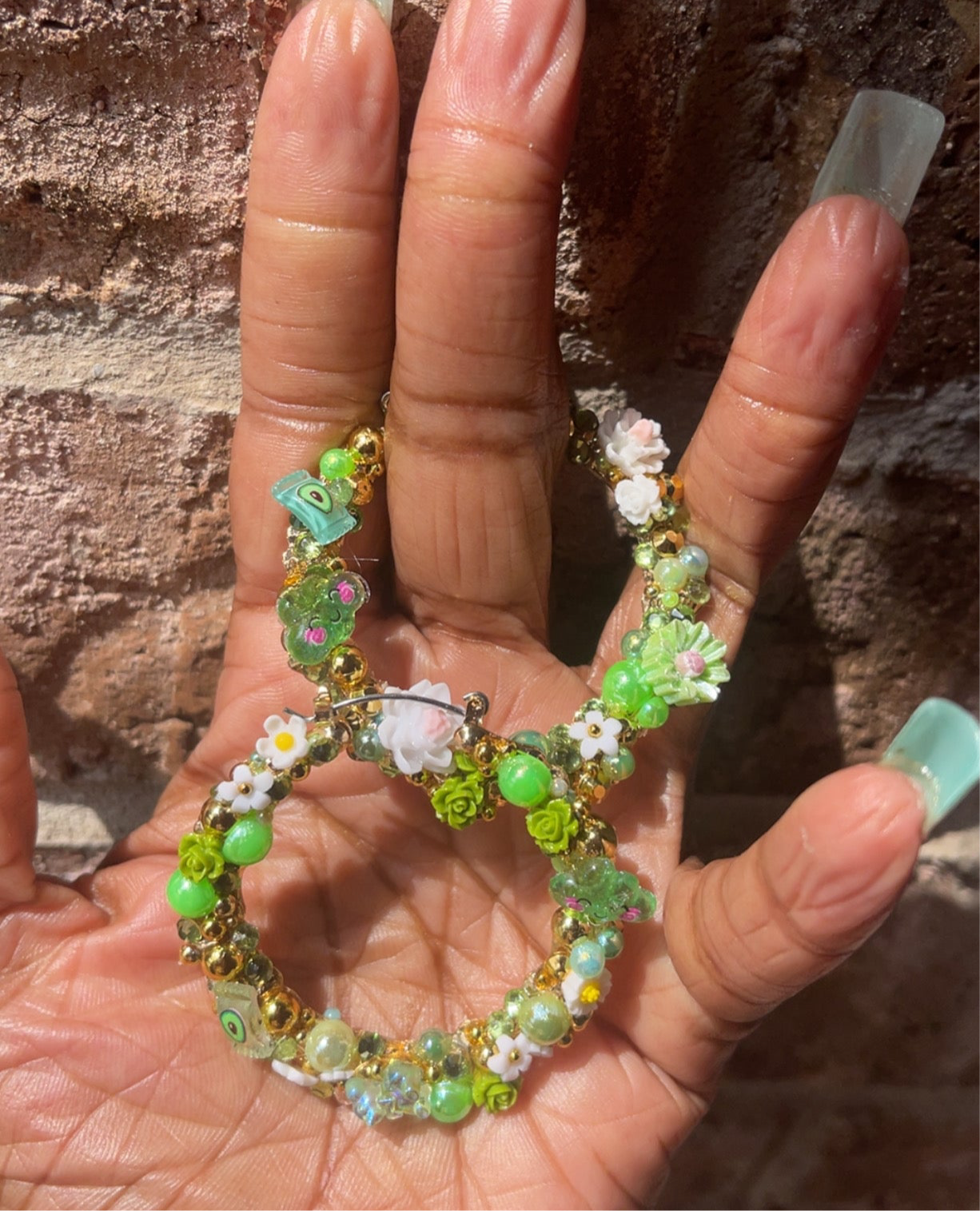 Bring a pop of playful charm to your everyday look with our Avocado Bloom Garden Hoops. These handmade hoops are sprinkled with dainty floral beads, fresh green accents, and a touch of golden sparkle — like carrying a little enchanted garden wherever you go.