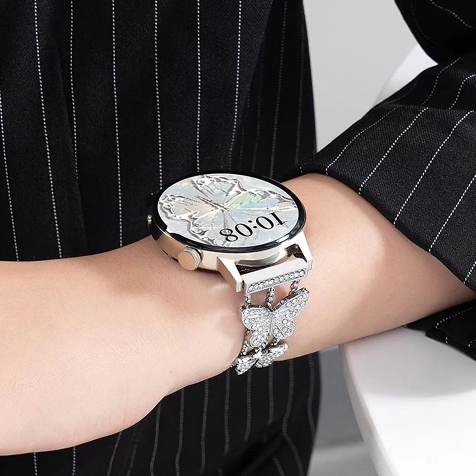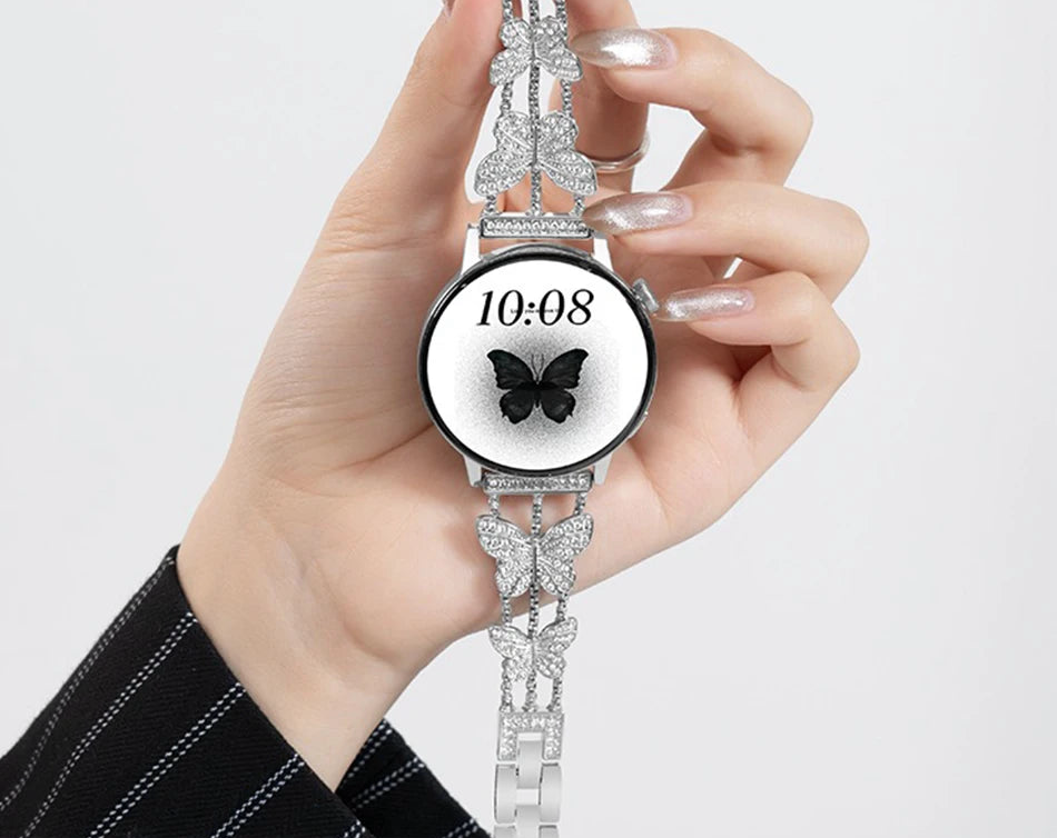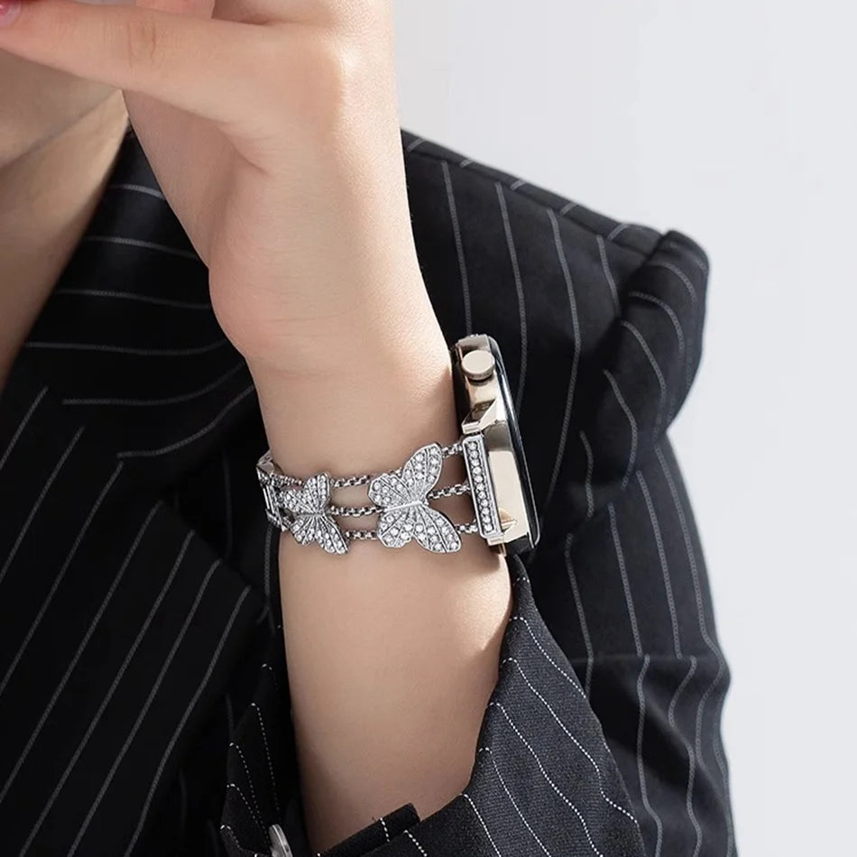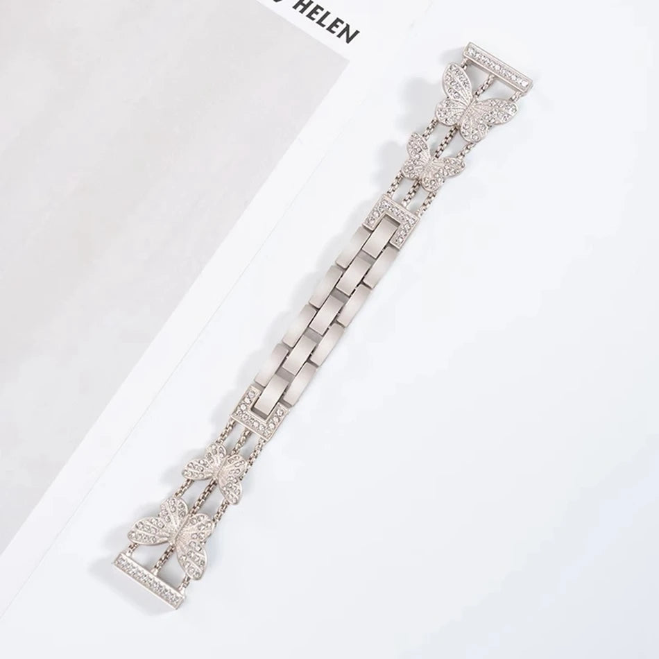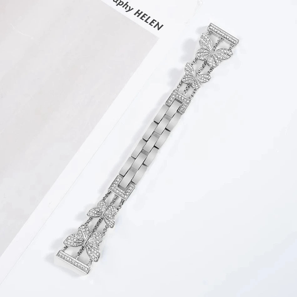 Turn your smartwatch into a work of art. This elegant stainless-steel band is adorned with sparkling crystal butterflies, giving your wrist a sophisticated, whimsical glow. Perfect for special occasions, night outs, or simply adding glam to your everyday look.