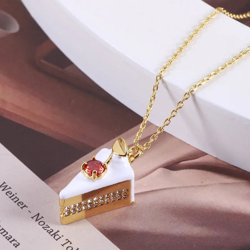 1 ร Cake Slice Necklace (gold tone, rhinestone accents + cherry gem)