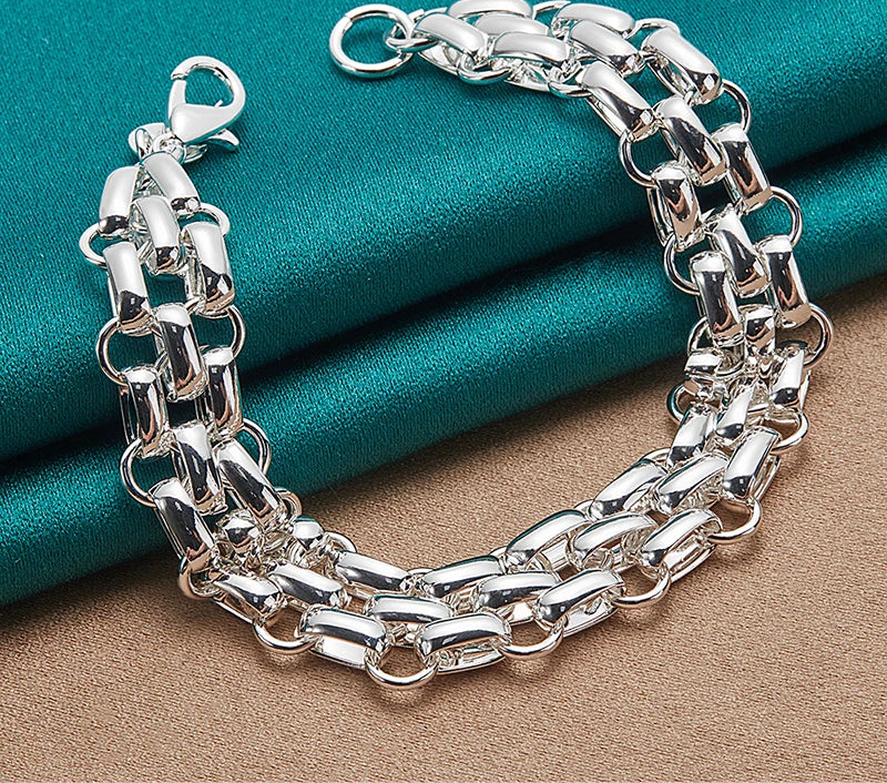 Shine bright with the Gleam Link Bracelet, a bold chain design crafted in sterling silver and polished for maximum brilliance. With its chunky links and sleek finish, this bracelet delivers effortless sophistication — whether worn solo as a statement piece or layered with other favorites. Lightweight yet durable, it’s the perfect mix of modern style and timeless elegance.