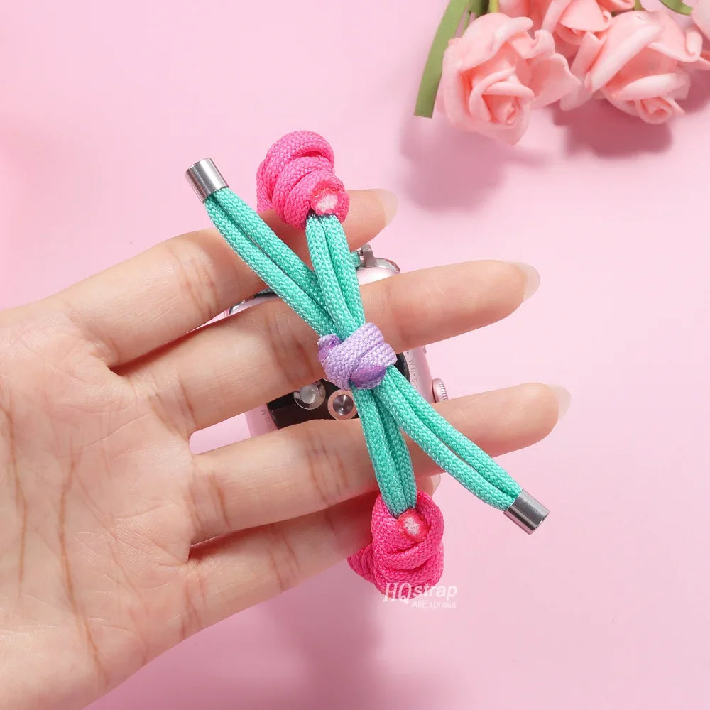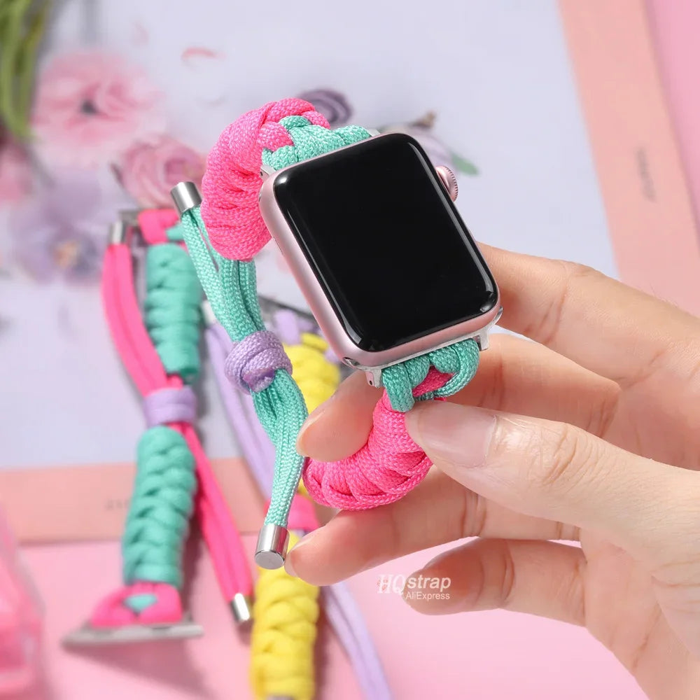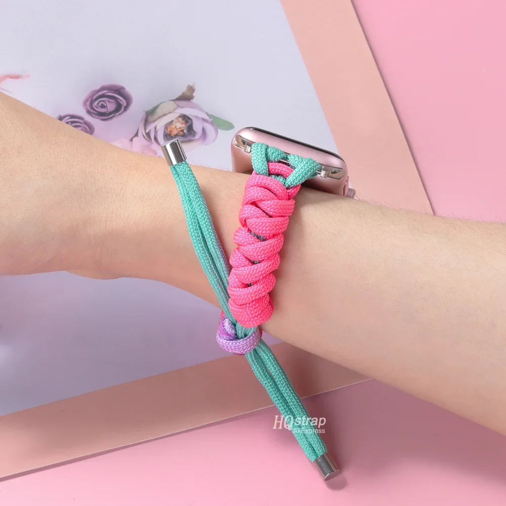 Bring bold color and playful energy to your wrist with the Neon Dreams Apple Watch Band. Crafted from durable braided nylon, this strap combines vibrant pink, purple, teal, and yellow tones for a fun, eye-catching look. Designed with a comfortable rope-buckle fit, it’s perfect for everyday wear, workouts, or adding a pop of personality to your Apple Watch.