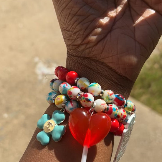 Celebrate care, strength, and style with Nurse Magic. This colorful bracelet combines white splatter, teal, and red beads with playful charms — a “Nurse in Progress” badge, heart lollipop, and flower detail. Whether you’re a nurse, student, or gifting one, this piece is the perfect mix of meaningful and fun.