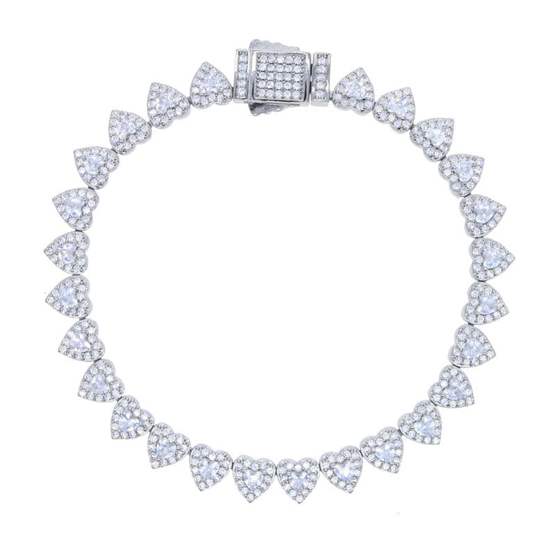 π Iced Heart Bracelet β A 7mm Miami-style iced bangle with a dazzling heart charm for girly glam.