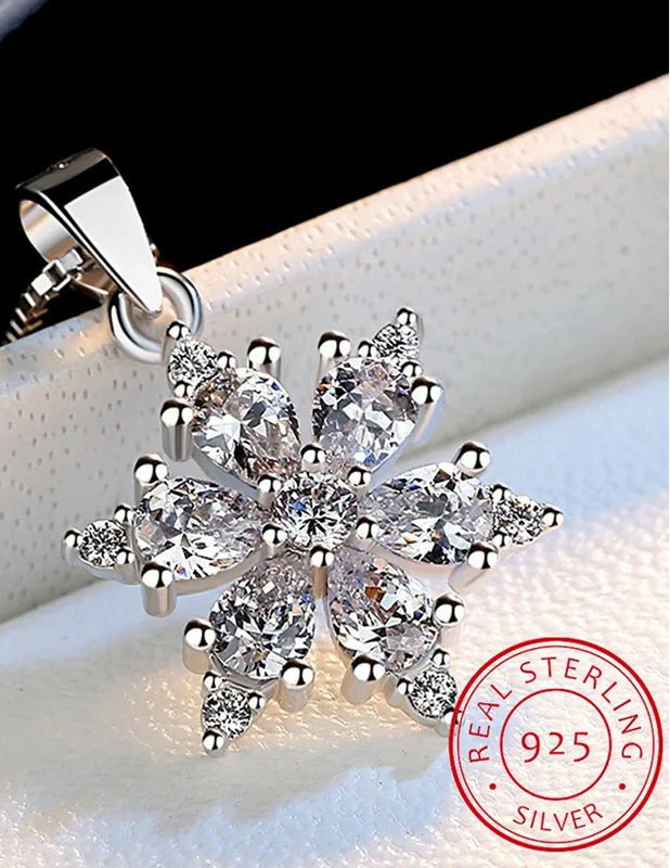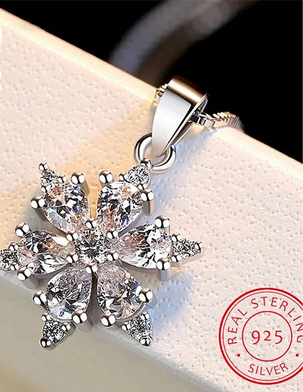 Add a touch of winter sparkle to your look with this 925 Sterling Silver Snowflake Pendant Necklace. Designed with dazzling AAA zircon stones, this piece shines beautifully from every angle. Lightweight yet luxurious, it’s the perfect accessory for the winter blues.